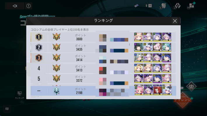 ランクポイント上位100人の情報を確認できるランキングです。編成も確認できるので、自身で編成を組む際の参考にしてみましょう。