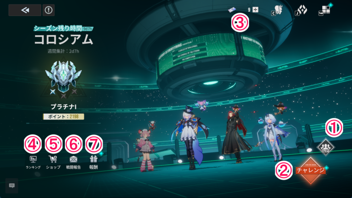 ウィークリー チャレンジ報酬 | 【更新周期】毎週更新 勝敗に関係なく獲得できる 【報酬内容】 コロシアム通貨 |