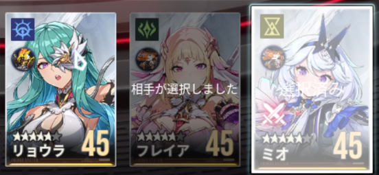 自分が使いたいキャラの中でも、特に相手に取られたくないキャラから優先的に選択しましょう。PvEで強力なキャラは育成しているプレイヤーが多いため、先に選択することで強力なキャラを1つ封じることができます。