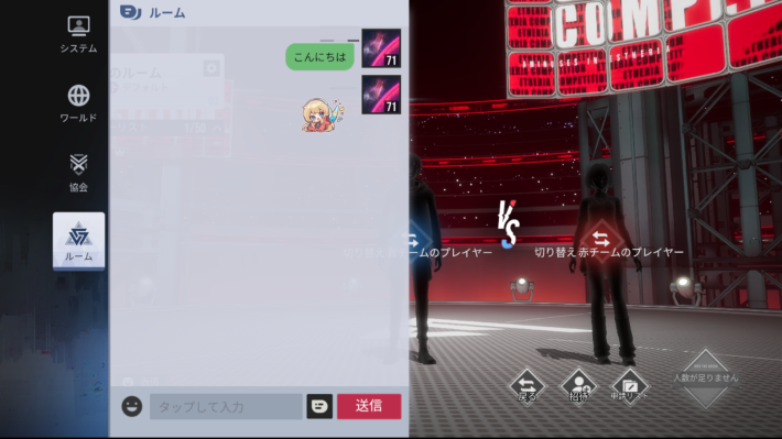 ルームに参加しているプレイヤーだけが使用できるチャットです。交流や対戦の打ち合わせ等に使用しましょう。