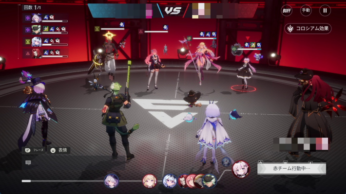 戦闘システムはPvEと同じです。速度によって行動順が決まり、ターンが回ってきたキャラが行動します。勝利を目指して戦いましょう。