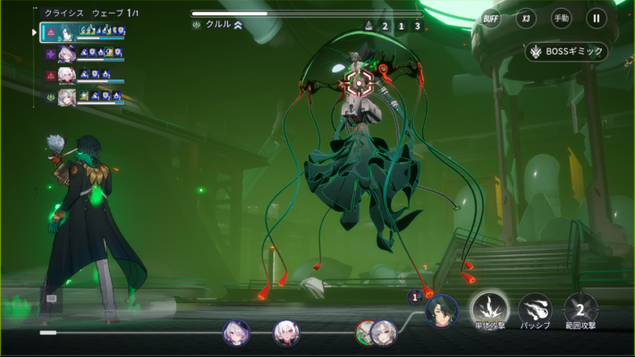 クルル戦では、津波の前に全ての雑魚を倒しきるのが大前提になります。素早く雑魚を倒せるように、強力な全体攻撃を持つアタッカーを編成しましょう。