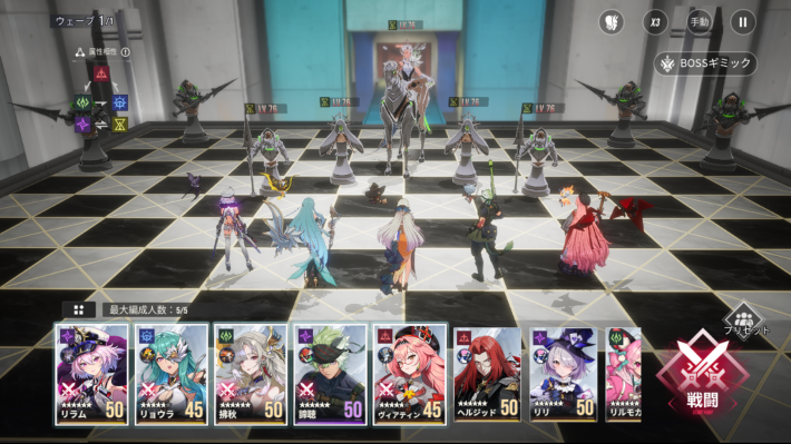 ヨリとリラムのダブルアタッカー編成です。単体火力の高いアタッカー2人、サポーター2人、ヒーラー1人を基本に編成を組み、耐久が厳しければヒーラーを増やすなど調整しながら戦いましょう。