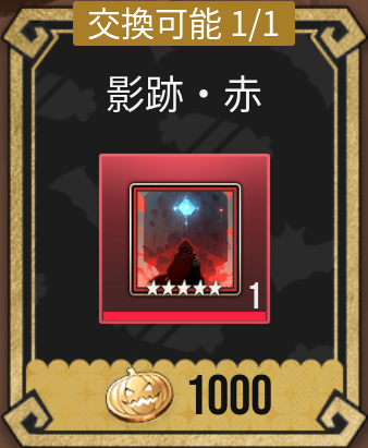 |  影跡・赤 | 【優先度】★★★★★ 交換に必要なメダル数:1000 交換1回あたりのアイテム数:1 交換上限回数:1回 |