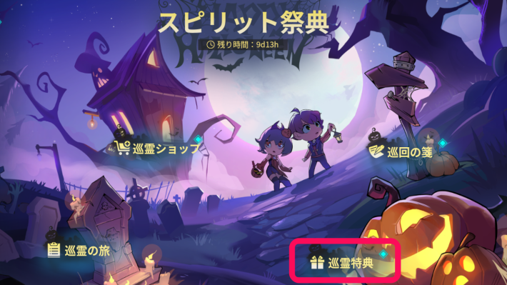 イベント限定課金ショップを開くには、イベントメニューの「巡霊特典」をタップ。