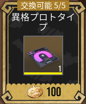 |  異格プロトタイプ | 【優先度】★★★★☆ 交換に必要なメダル数:100 交換1回あたりのアイテム数:1 交換上限回数:5回 |