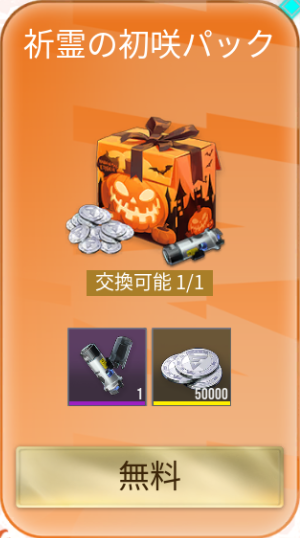 |  祈霊の初咲パック | 【おすすめ度】★★★★★ 値段:無料 購入上限回数:1回 【内容物】 精神安定剤×1 イザリアコイン×50,000 無料なので必ず購入 |