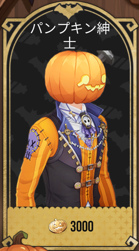 パンプキンのコスチュームは今回のイベント限定アイテムになります。ゲーム進行に関わるアイテムではありませんが、着せ替えを楽しみたいなら交換したいです。