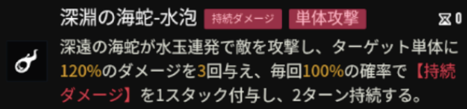 後半戦移行時に雑魚2匹が「深淵の海蛇」となりスキルも変化。前半戦で雑魚を倒していても、必ず深淵の海蛇が2匹登場します。