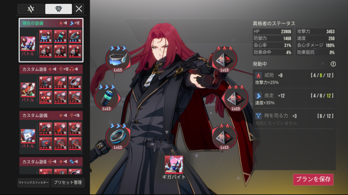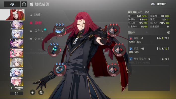「競技装備」をタップすることで装備設定メニューに。設定項目やメニューの使い方はPvEモードの装備メニューと同じです。