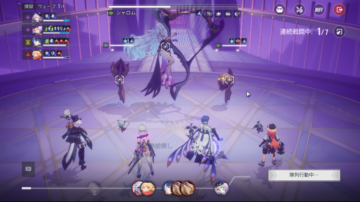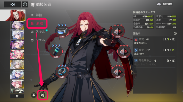 疑似PvPのコロシアムモードでは、戦闘開始前の編成選択時にも画面右上のメニューアイコンから競技装備メニューを開くことができます。