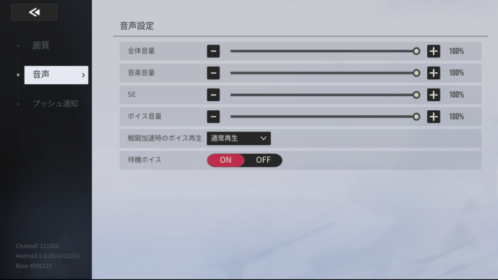 音声・言語・その他の設定はスマホ版と同じです。スマホ版の各項目を参照して下さい。