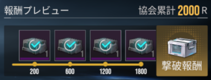 戦闘が終了したら、削ったHPゲージの量に応じて報酬を獲得。各種育成素材や協会コイン、協会ポイント等を入手可能です。
