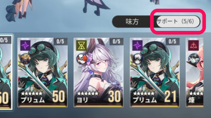 「サポート」タブをタップすることで協会メンバーが設定してるサポートキャラを編成することができます。
