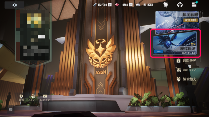 座標観測は協会専用のレイドボスコンテンツです。膨大なHPを持つボスを協会メンバー全員と協力し撃破するのが目標になります。