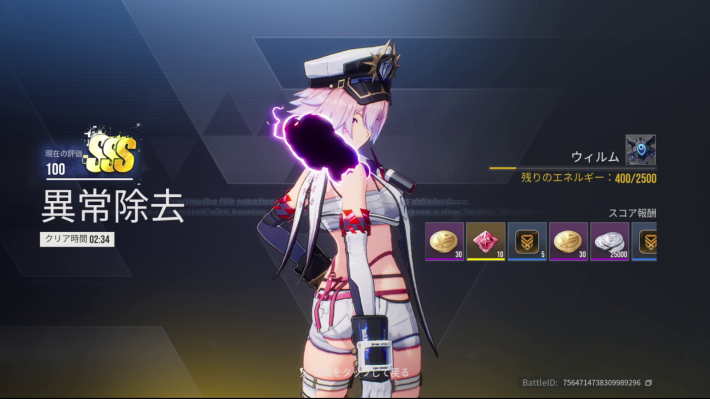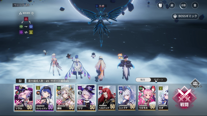 ボスはHPを100ゲージ持ち、全て削り切るかこちらが全滅すると戦闘終了です。全滅した場合は全滅した時点で削ったHPゲージの量がスコアとして記録されます。