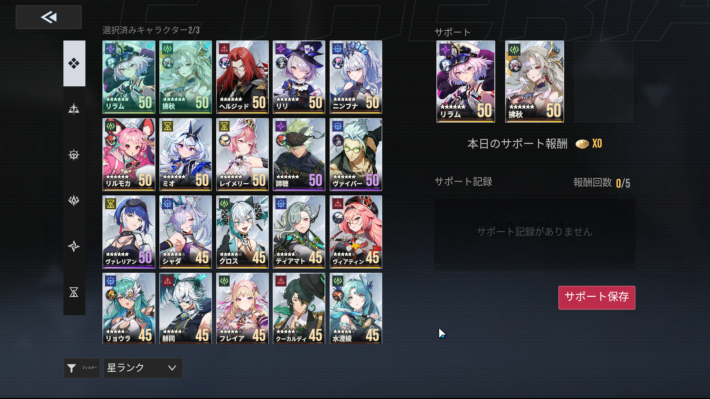 座標観測にはほかの協会メンバーに自身のキャラを貸し出すサポート機能があります。3人までサポートキャラを設定でき、他のメンバーに使用してもらうと報酬として少量のアイテムを獲得可能です。