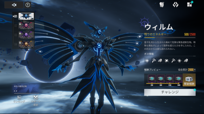 全4体のボスをすべて撃破するのが協会全体としての目標です。ボスは膨大な量のHPを持ち、協会全体でHP残量を共有しています。