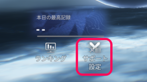 サポート設定画面を開くには、座標観測メニュー画面左下の「サポート設定」をタップしましょう。
