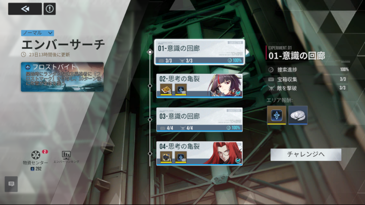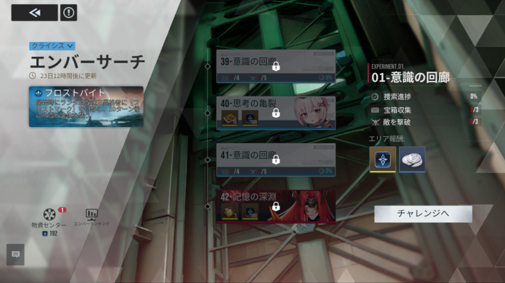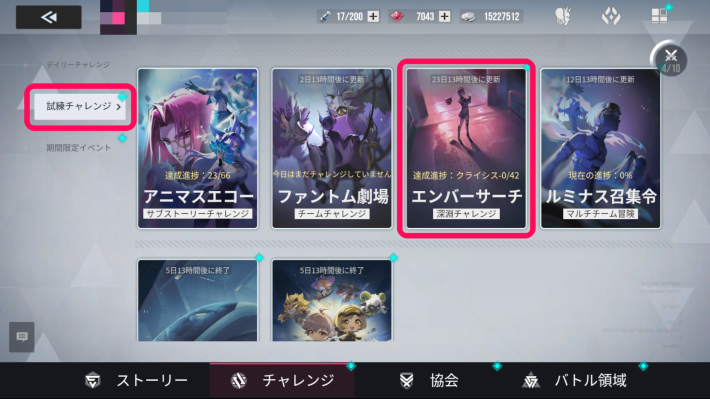 エンバーサーチはチャレンジメニュー中段の「試練チャレンジ」から挑戦可能です。