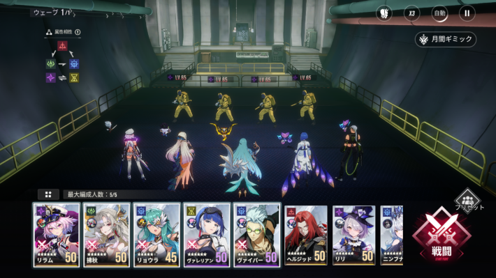 エンバーサーチの戦闘は最大5人編成です。編成制限等もなく、特段意識することはありません。