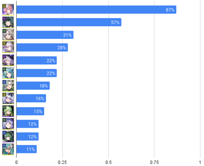 | キャラ | 使用率 |