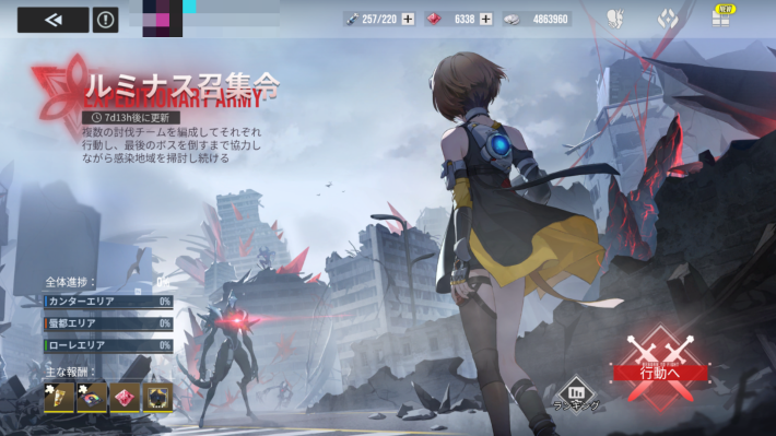 ルミナス招集令は3週間周期で更新される高難易度コンテンツです。3編成でエリアを制圧し、大量のアイテムを入手可能なコンテンツとなっています。