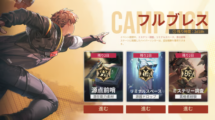 ▼リミナルスペース | 5人編成のボス戦コンテンツ 【手に入るアイテム】 源器 イザリアコイン(汎用通貨) ストーリー2章クリアで解放 |