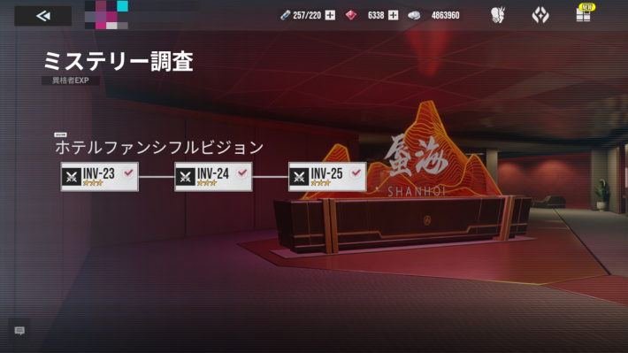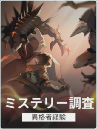 ▼ミステリー調査 | 2ウェーブ構成の雑魚戦コンテンツ 【手に入るアイテム】 調査記録(キャラ強化素材) 影跡(キャラ昇格素材) イザリアコイン(汎用通貨) ストーリー4章クリアで解放 |