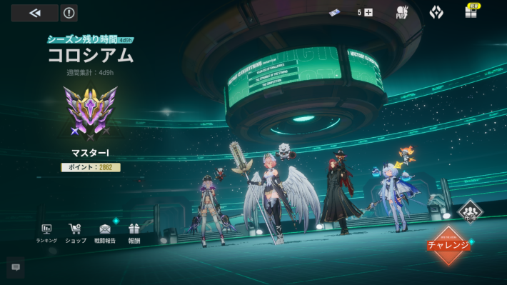 コロシアムは4v4の疑似PvPになります。他プレイヤーが設定したオートで動く防衛パーティーと対戦し、勝利することでランクポイントを獲得可能です。