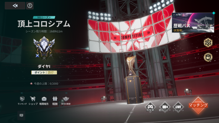 頂上コロシアムは他プレイヤーとマッチングしリアルタイムでキャラを操作するPvPです。コロシアムよりさらに緊張感のある戦闘を楽しめます。