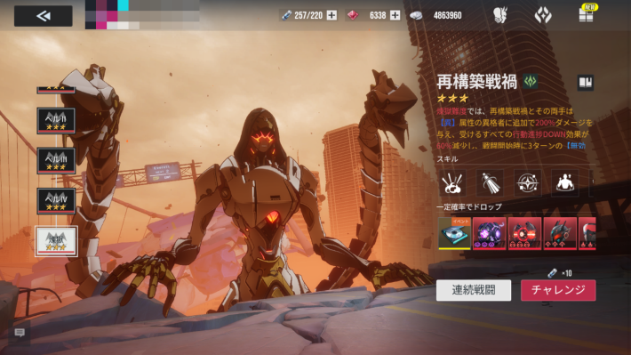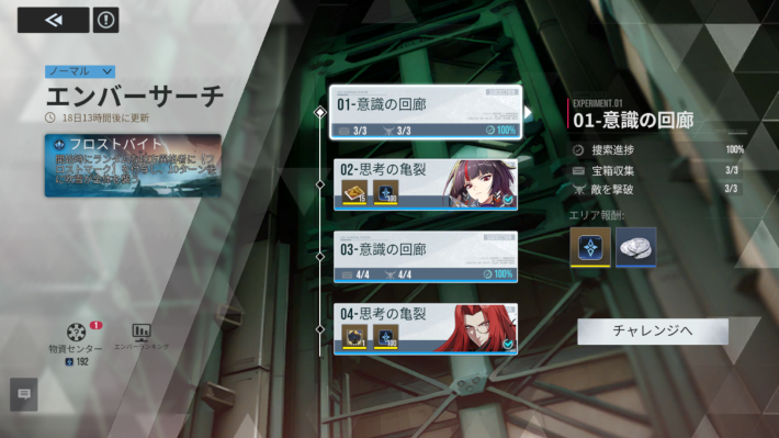 エンバーサーチは毎月1日に更新される高難易度コンテンツ。難易度は高いですが、完全体ラティスなどの貴重な強化素材を入手できます。