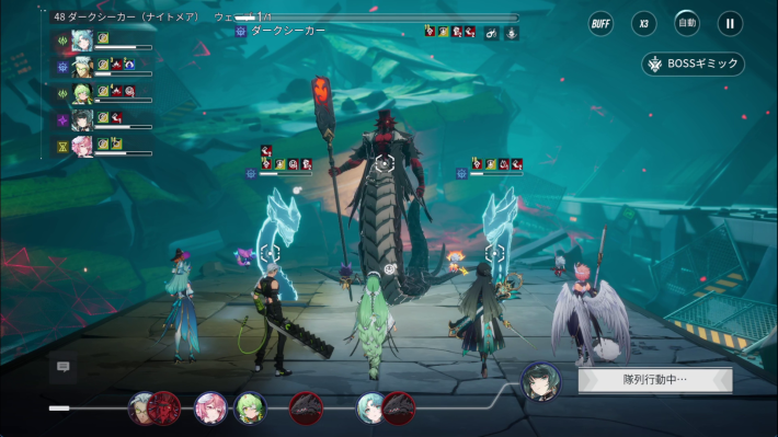 アニマスエコーのダークシーカーは非常にHPが多いです。戦闘時間が10分を超えているクリア者も多く、フルオートで戦える編成を組むことをおすすめします。