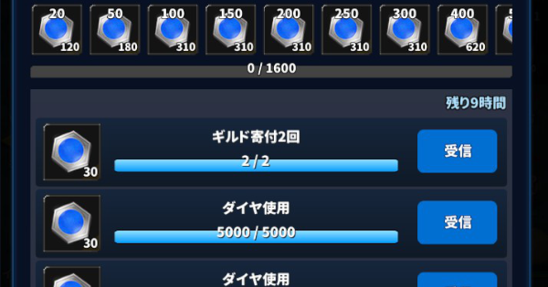 ギルドに参加していれば、毎日ダイヤをもらうことができる。手間もかからないので、毎日しっかり回収しておこう。