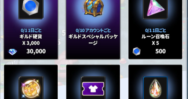ギルドショップでの買い物に必要な「ギルド硬貨」はギルド戦のデイリー報酬で獲得することができる。毎日こまめに挑戦して「ギルド硬貨」を貯めよう。