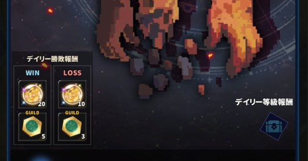 ギルド戦のデイリー勝敗報酬と週間リーグ報酬では、ギルド特性を成長できる「ギルド特性鋳貨」が獲得できる。