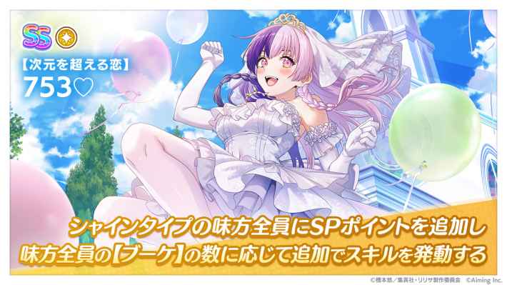 【次元を超える恋】753♡は、所持しているだけでイベント「君のことが大好きな2人の花嫁」でのイベントコイン獲得量が増加します。