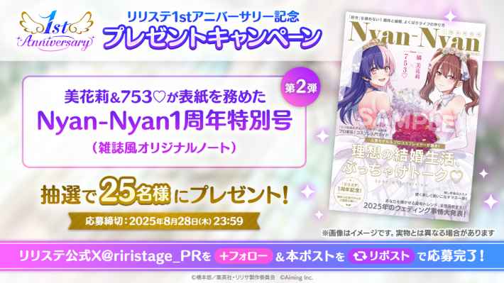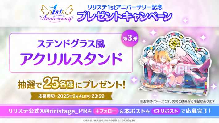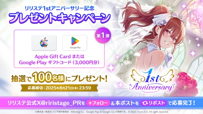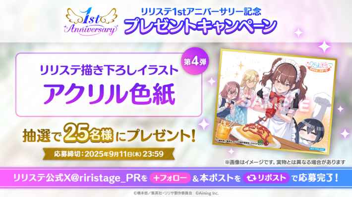 8月15日(金)より、1stアニバーサリーを記念して4週連続プレゼントキャンペーンをリリステ公式Xにて開催します。