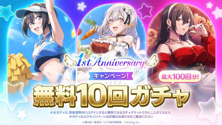 ■1stアニバーサリー記念ログインボーナス開催!期間限定キャラクターも登場する特別なガチャが最大100連引ける!