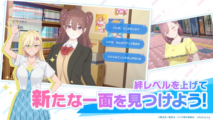 『リリステ』は、TVアニメ『2.5次元の誘惑(リリサ)』で奥村正宗(cv.榎木淳弥)や天乃リリサ(cv.前田佳織里)たちが繰り広げる熱血青春ストーリーを追体験できるオンラインRPGです。