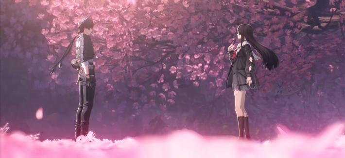 Ver2.8に登場する新エリアの「時の狭間に廃れていく街」は、かつて「穂波市」として名を馳せた商業都市でした。災害によって廃墟となりましたが、「千咲(チサ)」と名乗る制服姿の少女の空間を切り取る能力によって拠点となる安全地帯を築き上げています。偶然この街にやってきた主人公は、千咲と協力して街の探索を進めていきます。かつて都市として栄えたこのエリアには高層ビルが立ち並ぶ一方で、桜舞い散る自然豊かな光景も目にすることができるでしょう。