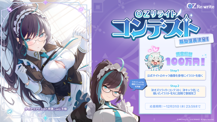本コンテストは、みんなで「共同創造」をテーマに、皆さまが自由な発想や創造力で『OZ Re:write』のキャラクターをリライト(アレンジ)し、作品を通じて世界観を一緒に広げていく企画です。