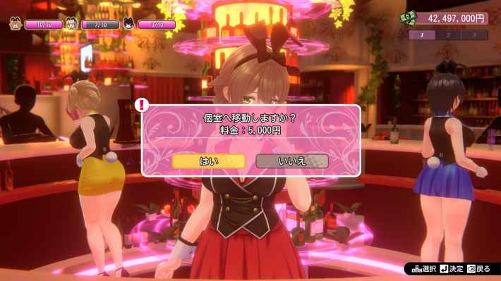このゲーム、前述したがかなりリアル志向になっており、個室に案内されてキャストとより親密になって楽しむことが出来るといった要素がある。