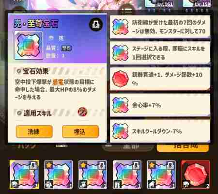 スキル1回選択とかダメージ4パーのレア宝石は10回以上でてるのに