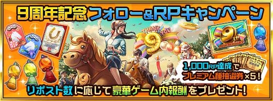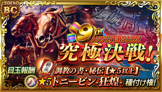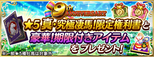 ■祝9周年記念!★5種牡馬限定種付け権利書と期限付きアイテムをプレゼント