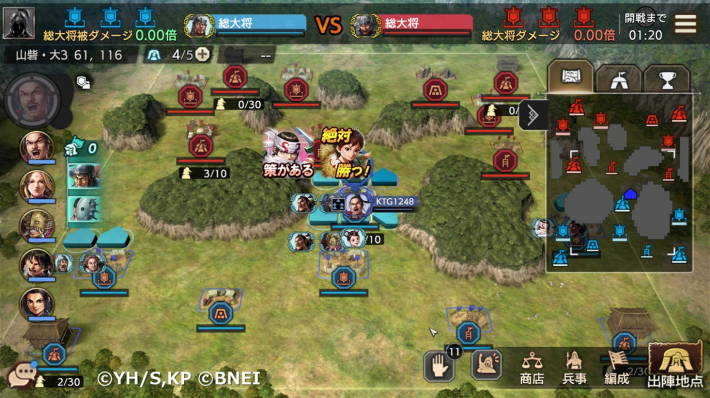 プレイヤーは1人の将軍となり、アニメに登場する個性豊かな武将たちを活かして戦場を攻略していきます。