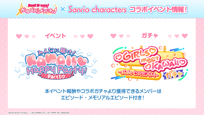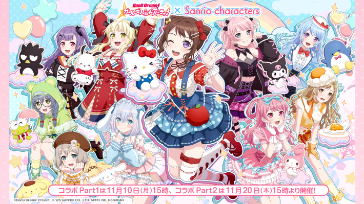 ブシロードが配信する『バンドリ! ガールズバンドパーティ!』において、「サンリオキャラクターズ」とのコラボが11月10日(月)から開催される。