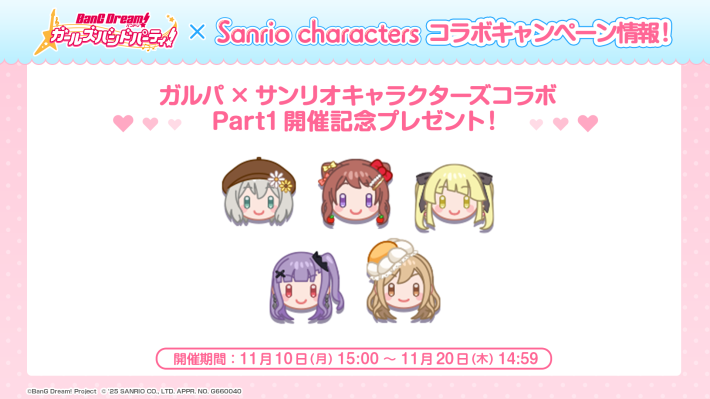 2. ガルパ×サンリオキャラクターズコラボPart1開催記念プレゼント!