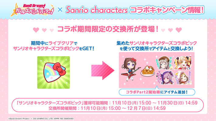 11月10日(月)15時より「ガルパ×サンリオキャラクターズコラボアイテム交換所」が登場いたします。