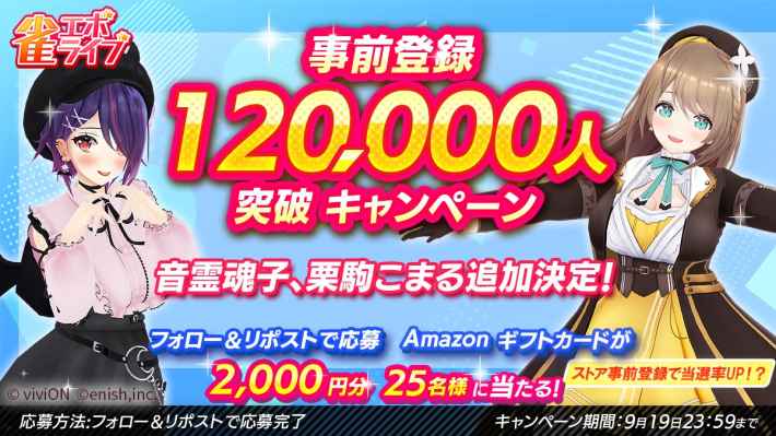 2025年9月16日(火)、本作の事前登録者数が12万人を突破し、あおぎり高校のメンバー「音霊魂子」さん、「栗駒こまる」さんの追加が決定した。